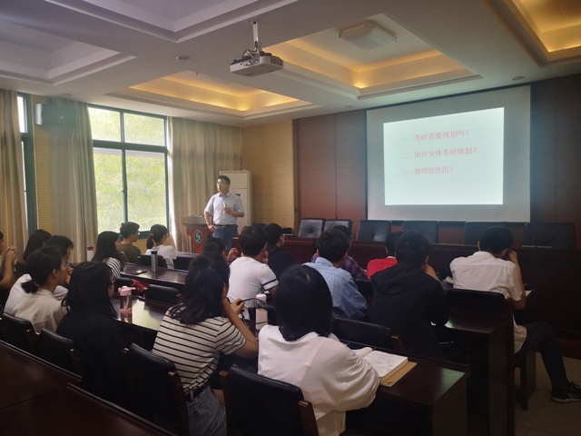 座谈会上,龚教授从考研规划、教师辅导等方面进行了阐述,对报考学校和专业选择给出了系统指导。最后,与会学生填写考研信息统计表,接下来将根据学生的专业意向进行考研分组,并安排对应的指导老师进行后续指导。